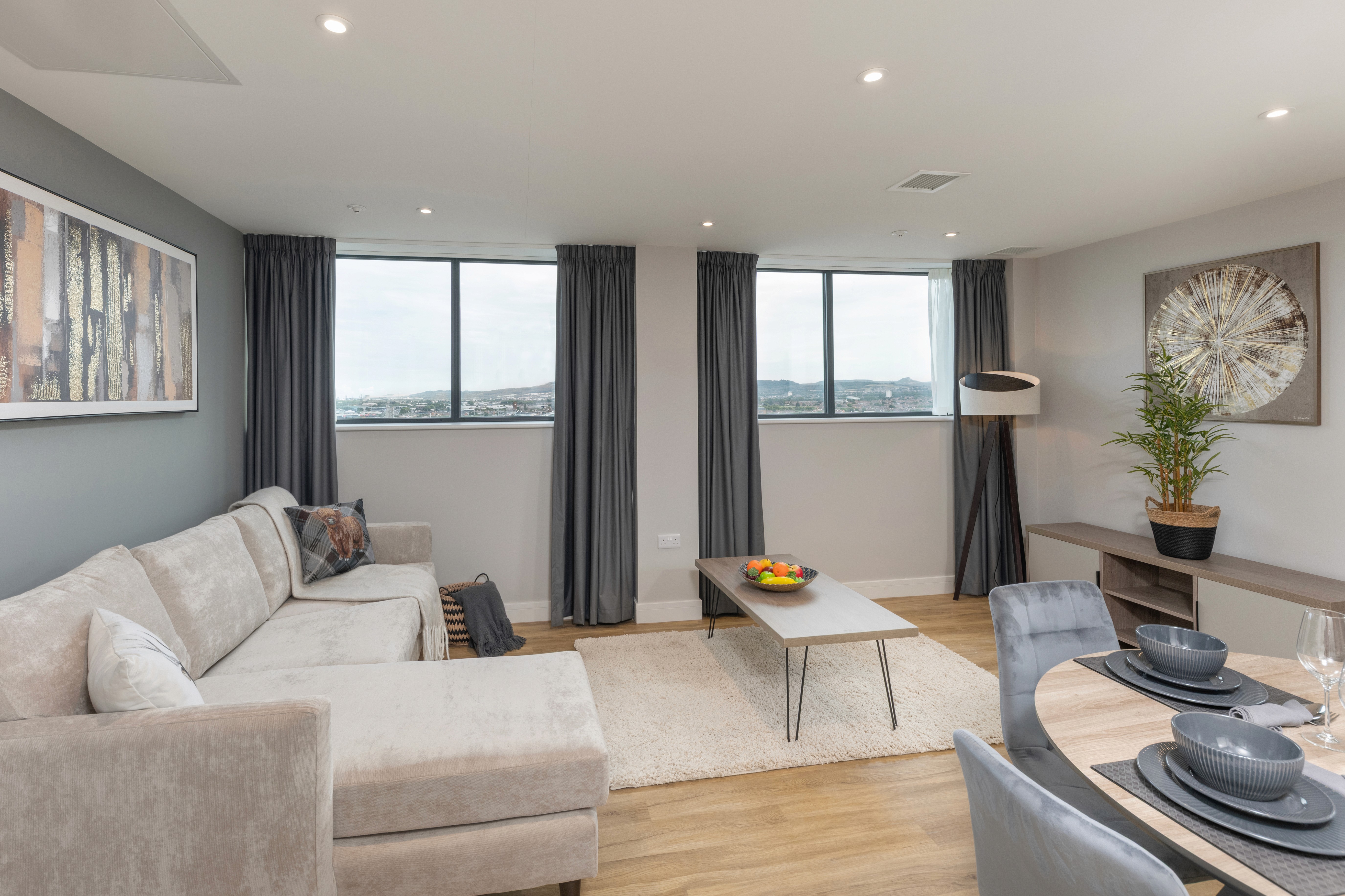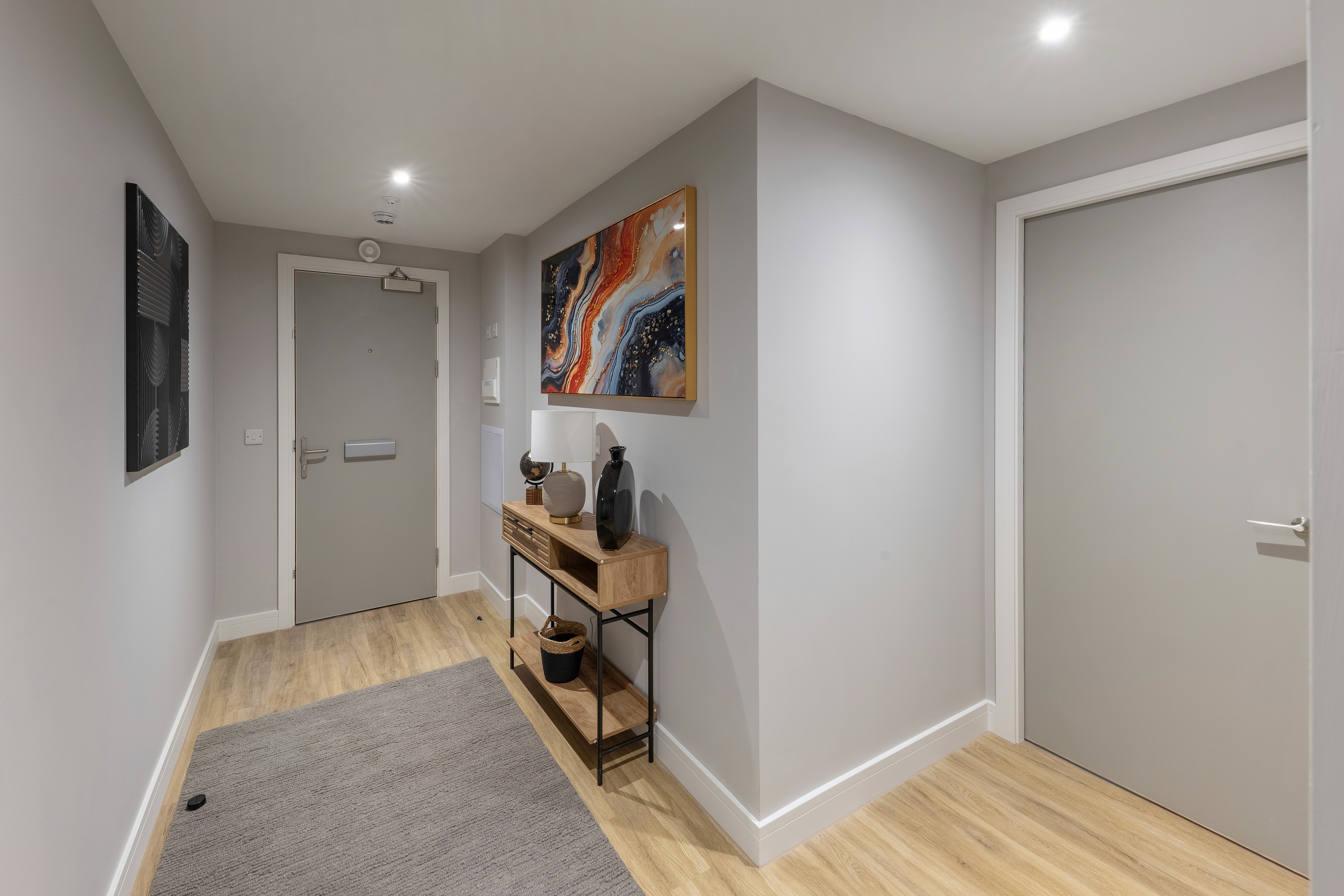 This luxury apartment is beautifully decorated and comprises an open plan living dining area with a fully equipped kitchen with integrated dishwasher, fridge/freezer, oven, hob, microwave and washer/dryer. Two spacious bedrooms including luxury king-size beds and floor to ceiling fitted wardrobes to maximise storage space. There is also a fully tiled luxury shower room with a large walk-in shower, vanity storage unit, LED mirror and heated towel radiator. All the apartments are soundproofed. With a dedicated 24/7 management system, the building is also equipped with video intercom, CCTV, Air Conditioning System, recycling shoots, two lifts and private parking is available. Set within close proximity to Middlesbrough Town Hall Theatre, MIMA, Centre Square, restaurants, shops, train station and transport links.