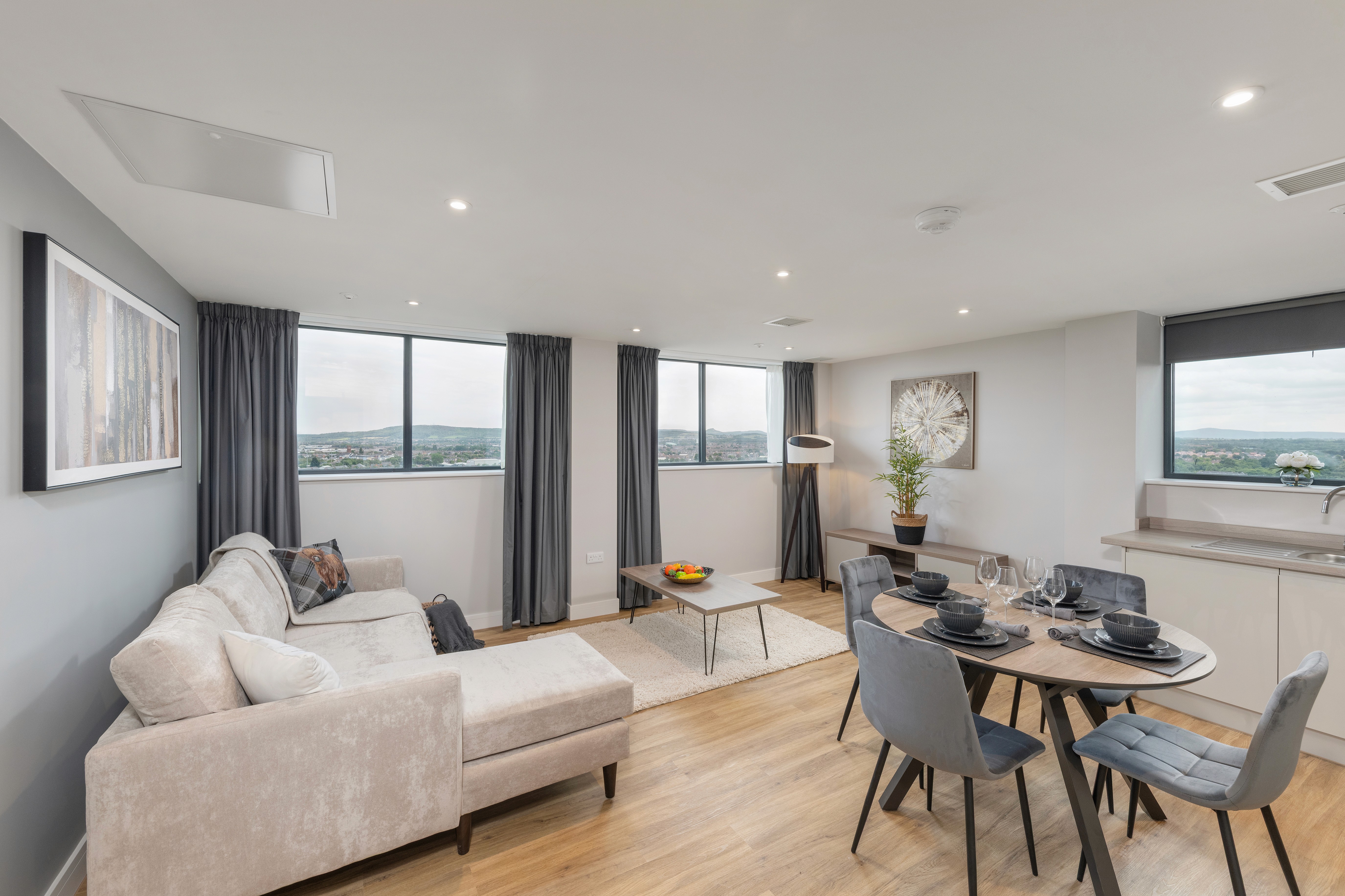 This luxury apartment is beautifully decorated and comprises an open plan living dining area with a fully equipped kitchen with integrated dishwasher, fridge/freezer, oven, hob, microwave and washer/dryer. One spacious bedroom including a luxury king-size beds and floor to ceiling fitted wardrobes to maximise storage space. There is also a fully tiled luxury shower room with a large walk-in shower, vanity storage unit, LED mirror and heated towel radiator. All the apartments are soundproofed. With a dedicated 24/7 management system, the building is also equipped with video intercom, CCTV, Air Conditioning System, recycling shoots, two lifts and private parking is available. Set within close proximity to Middlesbrough Town Hall Theatre, MIMA, Centre Square, restaurants, shops, train station and transport links.